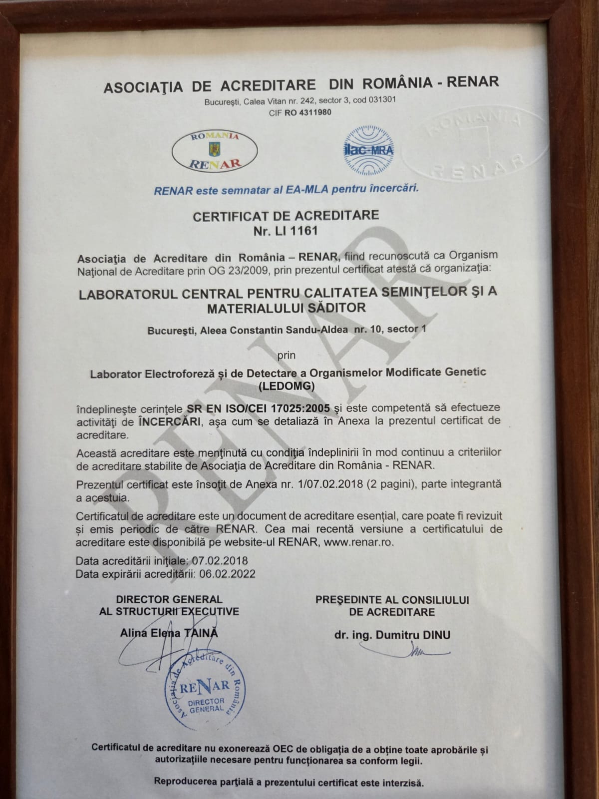 - Asigură şi controlează conformitatea aplicării metodelor de analiză de laborator în toate laboratoarele pentru determinarea calităţii seminţelor şi a materilalului săditor, instruieşte şi acreditează personalul specializat pentru ridicarea probelor de laborator şi pentru efectuarea analizelor de calitate, supraveghează şi monitorizează laboratoarele şi personalul acreditat;